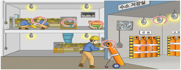‘숨은 위험을 찾아라!’는 발전소 현장에서 발생 가능한 작업유형별 실제상황을 홈페이지 화면에 그림으로 제시하고, 숨겨진 위험요소를 찾아내는 산업안전교육 콘텐츠다.