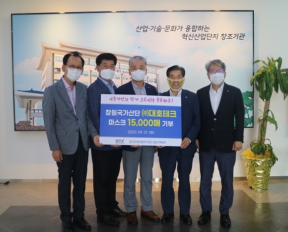 창원국가산업단지 입주기업인 ㈜대호테크가 22일 한국산업단지공단 경남지역본부에 마스크 1만 5천매를 기부했다.