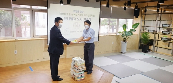 경성대학교 반려생물학과 조영근 교수가 후배들을 위해 모교인 브니엘 고등학교에 도서 약 150권을 기부했다.