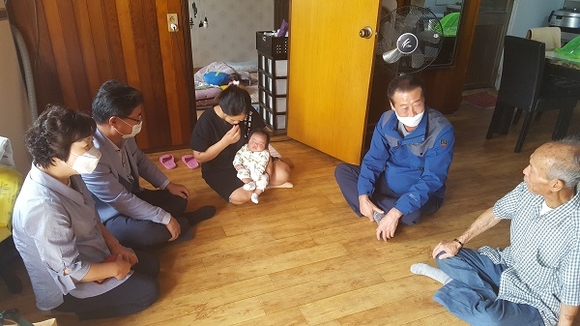 경남 합천군 덕곡면은 지난 22일 올해 처음으로 관내에서 신생아를 출산한 가정을 방문해 기저기, 물티슈 등 육아용품을 전달하고 출산의 기쁨을 함께 나눴다.