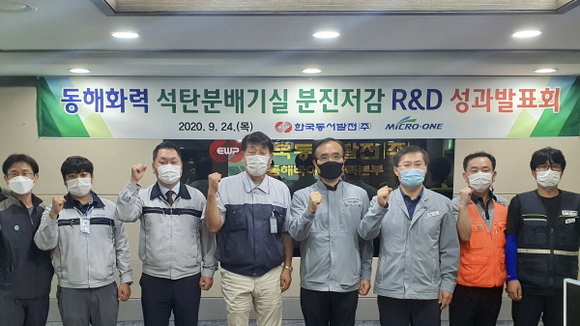 동서발전은 24일 동해바이오화력본부(강원도 동해시 소재)에서 공동연구개발 협력사인 ㈜마이크로원과 ‘발전소 석탄분배기실 분진 저감 연구개발 과제 성과발표회’를 열었다.