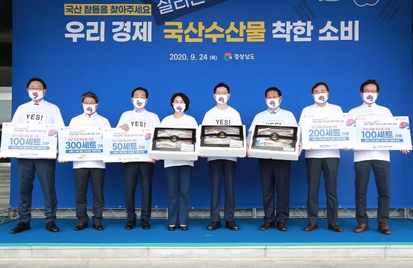 경남도가 24일 도청 현관 앞에서 국산수산물 제수용 꾸러미 전달식을 갖고 '소비자가 먼저' 국산수산물을 찾는 착한 소비 운동을 확산시켜 나가기로 했다.