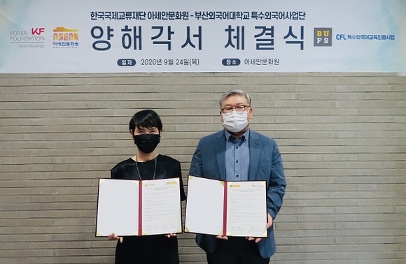 부산외국어대학교 특수외국어사업단은 지난달 24일 한국국제교류재단 아세안문화원과 특수외국어교육진흥사업 발전을 위한 양해각서(MOU)를 체결했다고 5일 밝혔다.