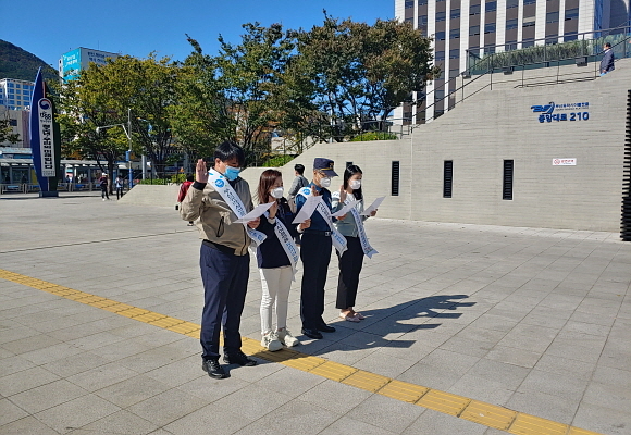 부산시설공단이 5일 오후 2시 부산유라시아플랫폼(부산역 광장) 일대에서 지역사회 청렴 의식 확산을 위해 부산도시재생지원센터 등 관계기관과 합동으로 청렴 캠페인을 전개했다고 밝혔다.