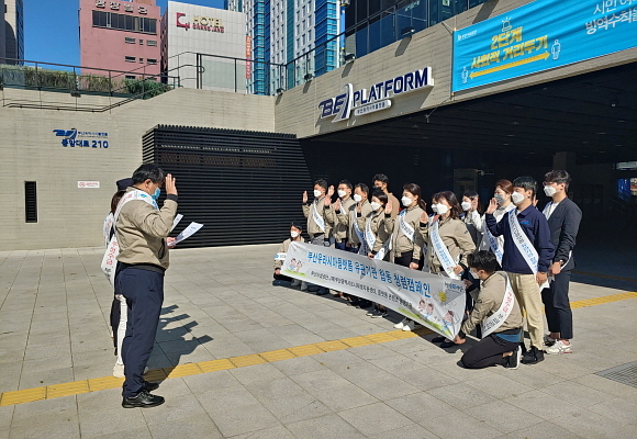 이날 캠페인에는 부산시설공단 플랫폼관리처 간부와 전 직원을 비롯해 (재0부산도시재생지원센터, 콘텐츠 운영기관, 치안센터를 비롯한 관계기관 직원 총 50여명이 참석했다.