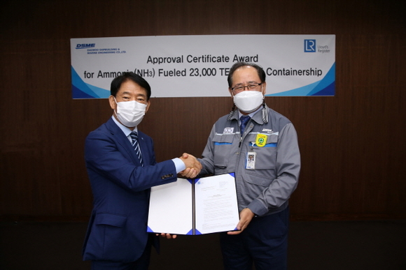 대우조선해양은 세계적 선급인 영국 로이드선급(LR)으로부터 23,000TEU급 암모니아 추진 초대형컨테이너선에 대한 기본인증(Approval in Principle)을 획득했다고 6일 밝혔다.