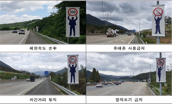 부경본부는 주요 사고 위험성을 이용객들에게 알리기 위해 경남지역 고속도로 55곳에 실루엣과 피켓을 결합한 홍보 표지판을 설치했다.