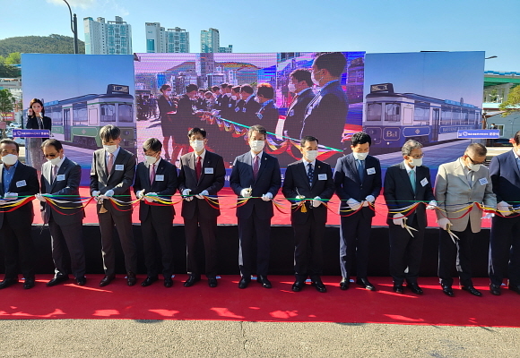 6일 오후 2시경 구 송정역 광장에서 국가철도공단과 부산시 공무원 등 관계자들이 참석한 가운데 해운대 블루라인 파크 준공 및 개통식이 열렸다.