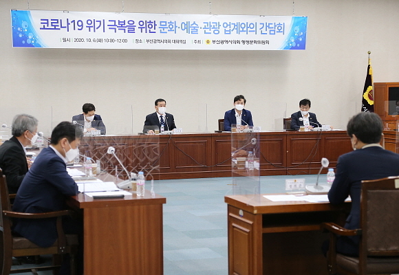 부산시의회는 행정문화위원회가 지난 6일 오전 시의회 대회의실에서 ‘코로나19 극복을 위한 문화, 예술, 관광 업계와의 간담회’를 열었다고 7일 밝혔다.