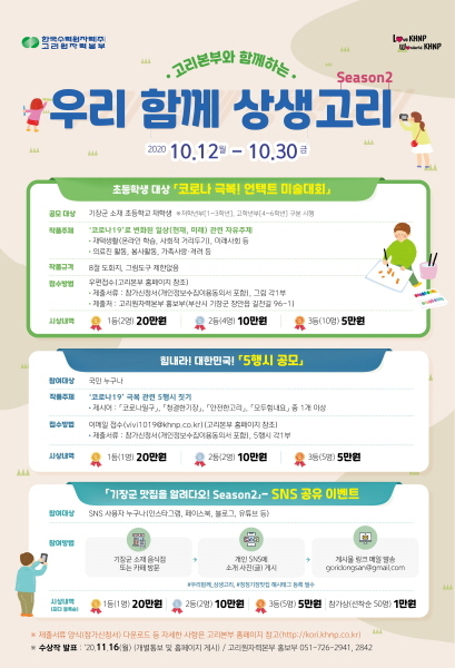 한국수력원자력 고리원자력본부가 오는 12일부터 30일까지 지역사회 활성화 이벤트 ‘우리 함께 상생고리 시즌2’를 시행한다.