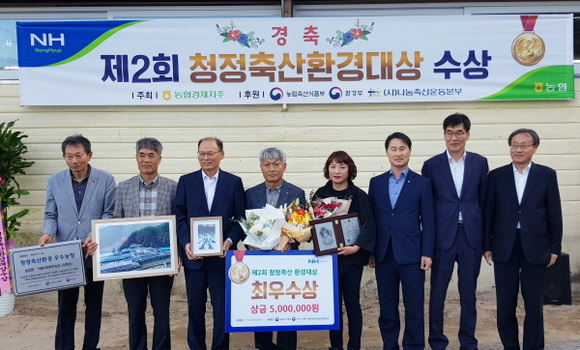 농협경제지주는 지난 6일 제2회 청정축산환경대상 최우수상을 수상한 거창군 위천면 ‘더불어행복한농장’을 찾아 시상식을 가졌다.