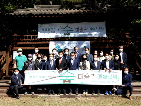 이번 전시는 이달 8일부터 30일까지 전시되며, 숲속미술관은 11월 30일까지 야외 전시를 통해 시민들과 만나게 된다. 특히, 숲속미술관은 봉암수원지 산책로 일대에 ‘딱 좋은데이와 함께하는 숲속 미술관 예술산책’이라는 테마로 미술품이 전시돼 수원지를 찾은 시민들에게 소소한 일상생활에서 활력소가 될 것으로 기대된다.