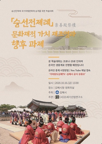 경남 김해시는 오는 16일 오후 1시 김해시청 대회의실에서 숭선전제례(경남도 무형문화재 제11호)의 국가무형문화재 승격을 위한 학술대회를 연다고 13일 밝혔다.