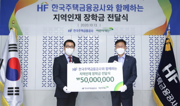 한국주택금융공사(이하 HF)는 지난 13일 부산지역 인재 육성을 위해 초록우산 어린이재단(부산지역본부장 여승수)에 ‘HF 지역인재 장학금’을 전달했다.