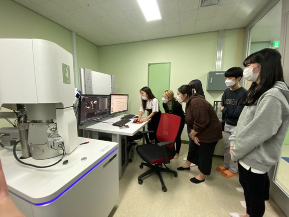 이번 행사는 코로나19로 인해 대면 수업과 실습이 어려웠던 점을 보완하기 위해 마련됐다. 행사에서는 센터가 보유한 최신 분석 장비인 전계방출형 주사전자현미경, 공초점 라만분광기, 펄스 레이저시스템, 태양전지 전류 전압 특성 측정 시스템 등을 학생들에게 소개했다.