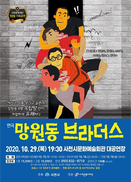사천문화재단은 10월 기획공연으로 오는 29일 저녁 7시 30분 연극 <망원동 브라더스> 공연을 사천시문화예술회관 대공연장에서 선보인다.