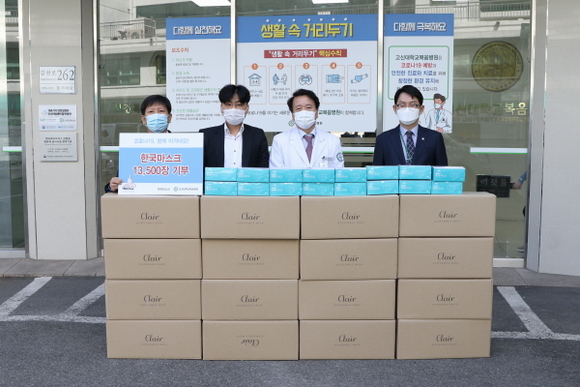 고신대학교병원은 한국마스크가 코로나19 방역 및 감염 예방을 위해 병원에 마스크 1만 3500장을 기부했다고 15일 밝혔다.