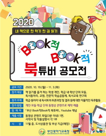 부산시교육청이 19일부터 내달 3일까지 부산지역 전 초·중·고등학교 학생과 교사를 대상으로 ‘2020 Book적 Book적 북튜버’ 공모전을 온라인으로 시행한다고 밝혔다.