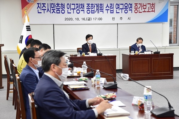 경남 진주시는 지난 16일 시청 상황실에서 '진주시 맞춤형 인구정책 종합계획 수립 연구용역' 중간보고회를 개최했다.