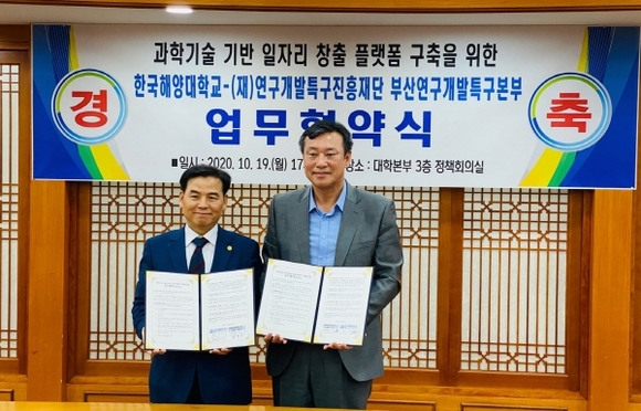 연구개발특구진흥재단 부산연구개발특구본부(이하 부산특구본부)는 한국해양대학교에서 배용국 부산특구본부장과 도덕희 한국해양대 총장, 김의간 산학협력단장 등이 참석한 가운데 ‘일자리 창출 플랫폼 구축을 위한 업무 협약(MOU)’을 체결했다.