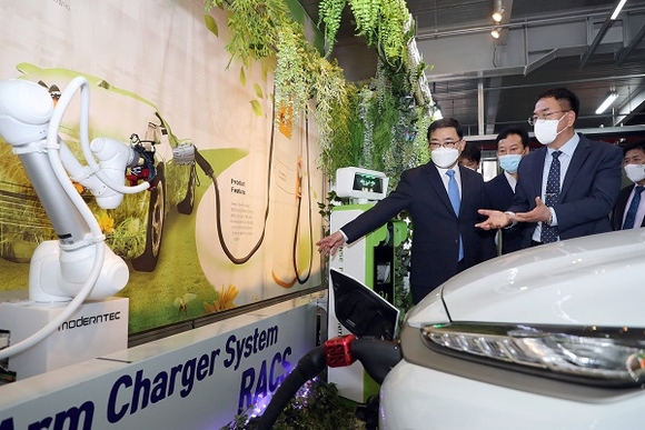 또한 이와 같은 기술을 기반으로 세계 최초 로봇충전 시스템도 개발했다. 관제 시스템의 지령에 따라 로봇은 설치된 레일을 따라 이동한 후 영상처리 시스템을 통해 주차된 차량의 종류, 주차 상태, 차량 위치를 인식해 자동으로 충전하는 시스템으로 자동화된 방식으로 인해 인력과 시간이 낭비되지 않으며, 사람이 직접 개입하지 않아 안전성도 크게 개선돼 여러 면에서 혁신적이라는 평가를 받고 있다.