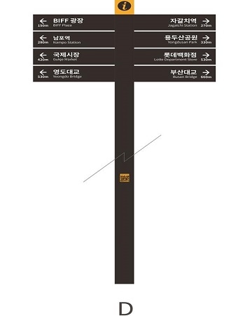 이를 통해 부산디자인진흥원은 관광안내체계 디자인 개발과 설계를 맡아 새로운 형태의 안내표지를 개발했다. 개발된 표지는 총 6종으로 ▲시 단위 광역안내 ▲지역 종합안내 ▲상세구역 유도 ▲목적지 유도-지주형 ▲목적지 도착 ▲목적지 유도-바닥형으로 구성됐다.