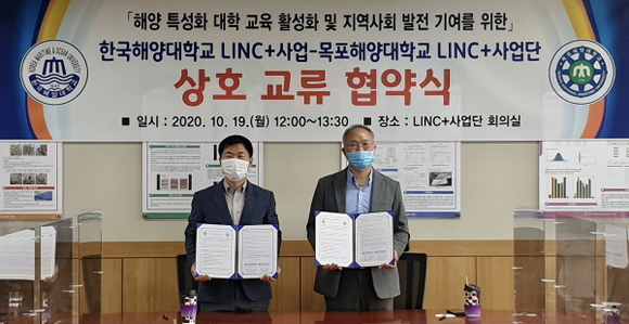 한국해양대학교 LINC+(링크플러스)사업단은 목포해양대학교 LINC+사업단과 해양특성화 대학 교육 활성화 및 지역사회 발전 기여를 위한 상호 교류 협약을 지난 19일 체결했다.