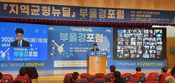 경남도는 20일 부산시청에서 열린 '지역균형뉴딜 부울경 공개토론회(포럼)'에 참석해 경남형 뉴딜과 동남권 메가시티 추진을 통한 한국판 뉴딜 선도 의지를 밝혔다.