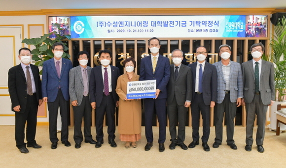 창원대학교는 21일 대학본부에서 ‘㈜수성엔지니어링 대학발전기금 기탁약정식’을 개최했다고 밝혔다.