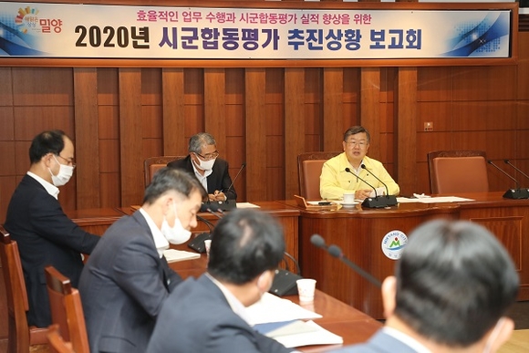 경남 밀양시는 22일 시청 소회의실에서 박일호 시장을 비롯한 부시장, 국소장, 관련 부서장 등 20여 명이 참석한 가운데 2020년 밀양시 시군합동평가 추진상황 보고회를 개최했다.