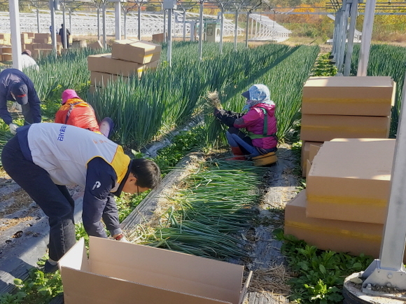 앞서 1차로 수확한 보리쌀 150kg과 셀프 콩나물 재배키트(70명)를 지난 8월 울산지역 취약계층에 전달했다. 이번에 2차로 수확한 대파 3.7t과 정부가 중소기업 활성화 및 동반성장을 위해 운영하는 동반성장몰, 브랜드 k몰 등에서 구매한 재래김 830세트는 비대면 드라이브스루 방식으로 전달한다.