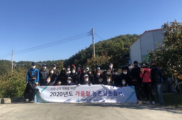 이날 도교육청 직원 40여 명은 코로나19 장기화로 인해 인력난을 겪고 있는 대봉감 재배농가를 찾아 감 수확을 도왔다.