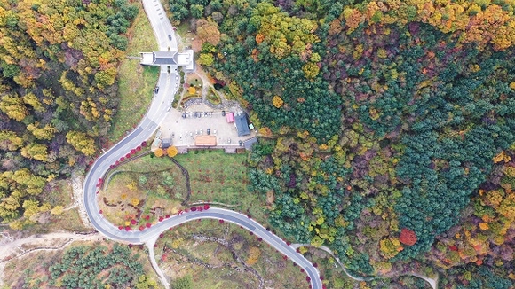 26일 지리산 가는 길목인 경남 함양군 오도재 명품 단풍길이 오색단풍으로 붉게 물들어 아름다움을 연출하고 있다. (사진=함양군 제공)