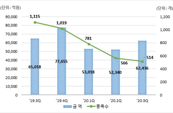 발행형태별로는 사모발행이 5조 2407억원으로 전체 발행금액의 83.9%를 차지했다. 또 사모발행은 나머지 16.1% 비중인 1조 29억원인 것으로 확인됐다.