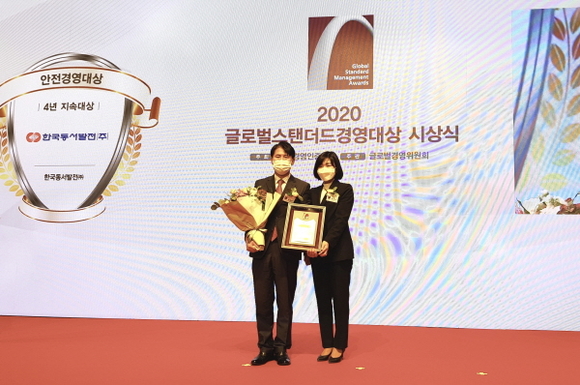 한국동서발전은 27일 열린 ‘제19회 글로벌스탠다드경영대상(GSMA)’ 시상식에서 안전경영대상(4년 지속대상)을 수상했다고 밝혔다.