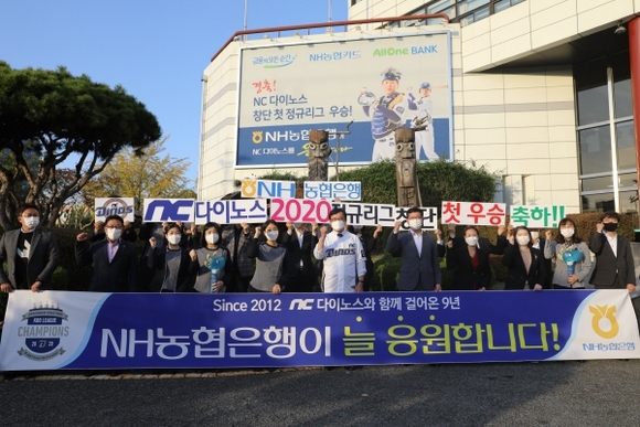 NC다이노스 황순현 대표이사는 “도민과 팬의 열렬한 응원 덕분에 창단 첫 정규리그 우승이란 쾌거를 거뒀다. 진심으로 감사드린다”며 “특히 창단 초기 농협은행의 도움으로 많은 고정 팬을 확보할 수 있었으며, 9년간의 동행은 가장 든든한 우군이었다. 마지막 한국시리즈까지 최선을 다해 팬들의 성원에 보답하겠다”고 말했다.