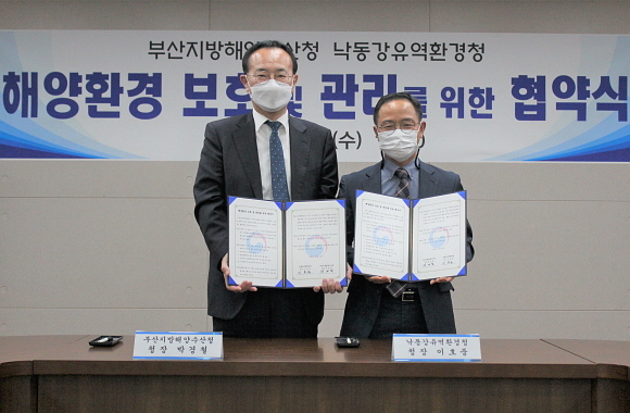 부산지방해양수산청(부산해수청)과 낙동강유역환경청이 해양환경 보호와 관리 업무를 효율적으로 추진하기 위해 28일 오전 11시 부산해수청에서 ‘해양환경 보호·관리’ 협약을 맺었다고 밝혔다.