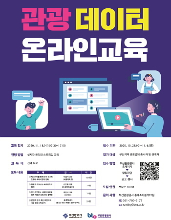 부산관광공사와 부산시가 관광 업계 종사자와 관계자를 대상으로 ‘관광 데이터’를 소재로 한 온라인 무료 교육을 시행한다고 28일 밝혔다.