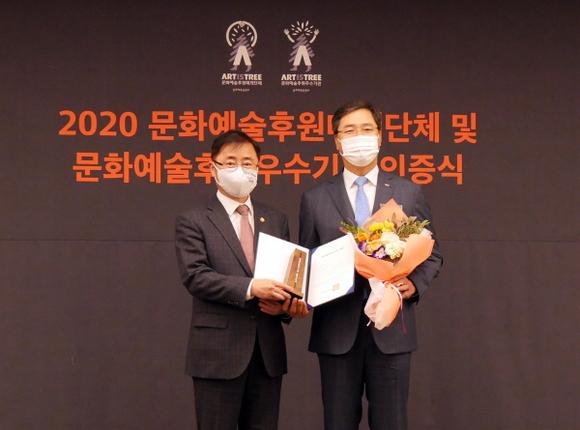 한편, JW 메리어트호텔에서 열린 2020년 문화예술후원 매개단체 및 문화예술후원 우수기관 인증식에는 여창현 상무가 참석해 문화체육관광부 오영우 제1차관으로부터 2020년 문화예술후원 우수기관 인증패를 받았다.
