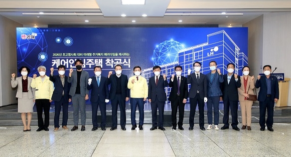 경남 김해시와 LH 경남지역본부는 28일 김해시청 대회의실에서 고령 친화적 미래 주거복지모델을 제시할 케어안심주택 착공식을 개최했다.