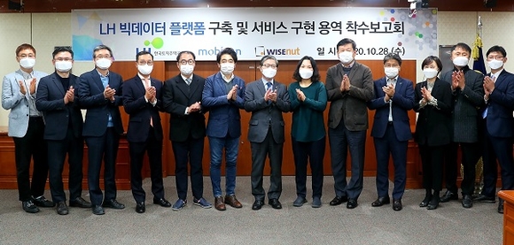 한국토지주택공사(LH)는 28일 경기도 성남시 소재 LH 오리사옥에서 빅데이터 분석 기반의 프로세스 혁신을 통한 주택품질 향상과 고객만족도 제고를 위한 '빅데이터 플랫폼 구축 및 서비스구현 용역' 착수보고회를 가졌다.