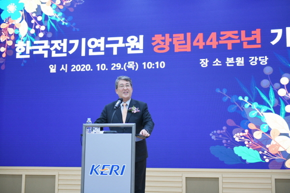한국전기연구원(KERI)이 창립 44주년을 맞아 29일 기념식을 개최했다. 이번 행사는 신종 코로나19 확산방지를 위해 방역수칙을 준수하며 진행됐다.