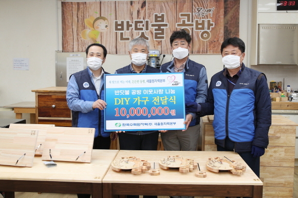 한국수력원자력 새울원자력본부 직원 동호회인 ‘반딧불 공방’ 회원들이 29일 본부 인근지역(서생면, 온양읍, 온산읍) 취약계층 5가구에 맞춤 제작한 책상, 4단 서랍장, 독서대, 벽시계 등을 전달했다.