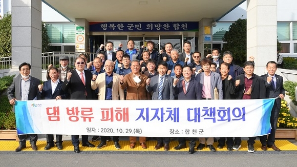 지난 8월 정부 측의 댐 물 관리 실패로 피해를 입은 각 자치단체의 대책위원회가 29일 경남 합천군에 모여 대책회의를 가졌다.