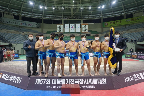 경남대학교 씨름부가 지난 1일 경상북도 안동체육관에서 열린 ‘제57회 대통령기전국장사씨름대회’ 대학부 단체전에서 우승을 차지했다.