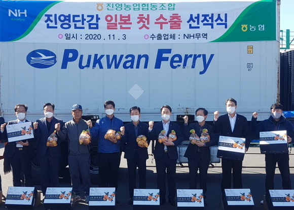 경남농협은 3일 진영농협 농산물산지유통센터에서 단감 일본 최초 수출을 기념하는 선적식을 가졌다.