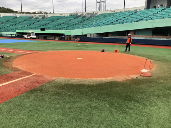 이번 공사를 통해 공단은 우천 시 배수 문제와 약한 경도로 경기 진행에 지장을 줬던 기존의 베이스 흙(앙투카)을 마운드 블록 및 인필드 믹스로 교체했다.