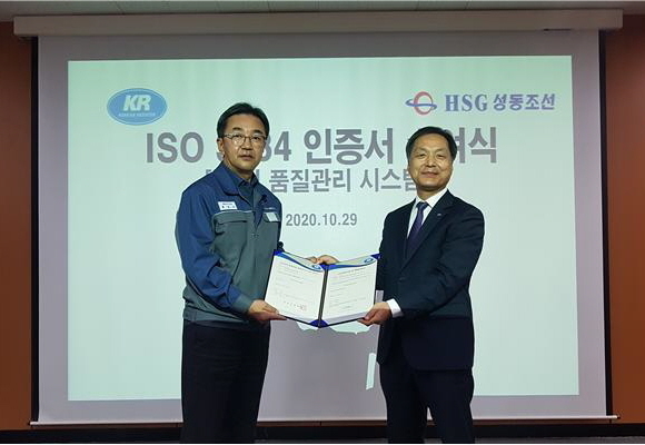 이번 HSG성동조선이 취득한 인증서는 ISO 3834-2로 ISO3834 표준 시리즈 가운데 가장 높은 수준에 해당한다.
