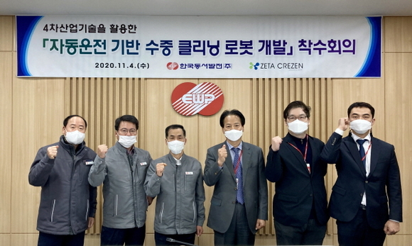 동서발전은 4일 발전기술개발원에서 수중로봇 전문기업인 ㈜제타크리젠과 ‘자동운전 기반 수중 클리닝 로봇 개발’을 위한 업무협약을 체결하고 착수회의를 개최했다.