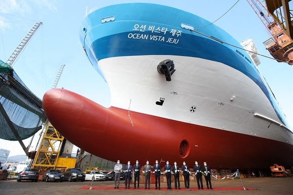 경남 사천과 제주를 잇는 여객선 '오션비스타 제주호' 진수식이 운항사인 (주)현성MCT 및 사천시 등 관계자들이 참석한 가운데 대선조선(주)에서 5일 개최됐다.